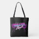 Ilustração do design de texto "Miami Beach" com flamingos e decoração de triângulos em cores azuis, brancas e cor-de-rosa vibrantes em fundo de meio-tom