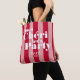 Nossa bolsa Mon Cherie Let's Party Tote é a peça definitiva para sua celebração, apresentando listras vermelhas vibrantes e podendo ser personalizada com seu destino e ano.