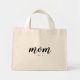 Mala de mini tote preto e branco personalizada para a mãe no estilo moderno de chic, tipografia minimalista. Inclui frente e verso. Facilmente personalizável com nomes de mães e crianças.