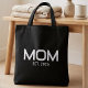 Black White Mama Established New Mom Gift - Minimal Elegant Bold Mom Tote Bag - Add your custom "Est" established year date when your first child was born. Add additional years for each child.