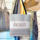 Saco de tote em azul turquesa, bege e branco. Hashtag de arte personalizada "design "#momlife" em cores de praia. O presente perfeito para a tua mãe no seu aniversário ou dia de as mães.
