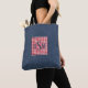 Trendy dark denim print shoulder tote bag with a red and white gingham check framed monogram square. Easily change the dark blue initials and minimalist quote on back using the Template provided. Dimensions are 16" x 16" with a 28" black strap; an 18" bag is also offered. The exterior is 100% sturdy brushed polyester; interior is 100% polyester nonwoven laminate. Printed and then sewn for edge-to-edge designs. See "About" for additional information and care. Made in the USA.