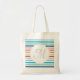 Adicione o seu monograma inicial a esta bolsa de tote de orçamento de padrão listrado com faixas horizontais de pré-disquete em uma paleta na moda de cores primavera de tendências. Esta design fresca e colorida traz a menina feminina das mulheres que amam moda.