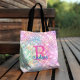 Bonito chic e elegante brilho iridescente feminino em um saco de tote cor-de-rosa unicórnio arco-íris. Bonita, moderna e legal bolsa para a moda-saborosa e apaixonante da arte. Personalize facilmente este design de mochila com o seu nome. Este design na moda seria excelente para meninas que gostam de designs cintilantes. Mostre seu estilo pessoal, fique em voga, em moda e sinta na moda com um design único que você também pode personalizá-lo sobre outro produto de sua escolha. Seja como dia de os namorados, Natal ou como presente em geral, faz uma ideia de presente excelente para qualquer mulher que ame elegância moderna e brilhante. NOTA: Estes são gráficos impressos - sem brilho real, joias ou peças levantadas.