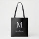Este bolsa simples, à moda caracteriza seus inicial e nome separados por um divisor elegante.