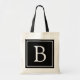 Bolsa Tote Monograma clássico simples | Preto com texto branc