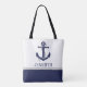 Tote Bag Monograma do Nome da Corda Náutica do marinho da Ancoragem Náutica Design e Branco.