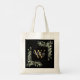Bolsa tote de monograma de nome floral de folhas verdes em aquarela elegante com uma inicial de monograma dourada em um fundo preto com seu nome escrito em uma fonte branca estilosa. Desenhado por Thisisnotme©