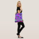 O padrão das linhas geométricas rosa e roxo é um design moderno e brilhante que faz um belo acessório. Coloque suas iniciais ou nome na frente.