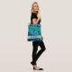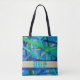 Bolsa Tote Monograma de Padrão Geométrico Azul e Verde