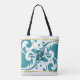 Bolsa Tote Monograma Dourado de Borda Branco e Teal