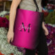 Crie o seu próprio dom preto e rosa-quente monograma. Saco personalizado personalizável de um monograma. Bolsa de livros para garotas. Belo nome de caligrafia, design. Design de guião cursivo elegante. Crie um presente de damas de honra para um membro da sua festa de casamento.