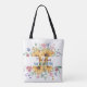 Monograma Pássaros Sunflorais Personalizados Branca de Tota de Bridesmaid Esta bolsa colorida de girassol e flores silvestres pode ser personalizada com seu nome e será o presente perfeito em chás de panela, chás de fraldas, graduações e aniversários. Apresenta um design de girassol amarelo combinado com flores silvestres cor-de-rosa, azuis e verdes e um monograma de blocos com nome de script e linhas de texto de título. Personalize com seu próprio texto.