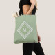 Este design moderno e sofisticado apresenta uma moldura em forma de diamante com três linhas brancas sobre um fundo verde sage e um monograma em uma fonte de bloco branca elegante. Altere a inicial para a sua. Você pode personalizar ainda mais este design alterando a fonte.