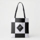 Procurando o acessório perfeito para um olhar diário e chic? Este belo e moderno, preto e branco, Tote Bag, com forma de diamante, é para você! Você pode personalizá-lo facilmente adicionando seu monograma. É também o presente perfeito para seus namoradas de aniversário, Dia de os namorados ou qualquer outra ocasião.