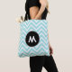 Bolsa Tote Monograma Turquesa e Chevron Branco