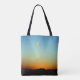 Belo Saco de Tote Sunset, Luz Brilhante. Mantenha-se tranquilo neste lindo pôr do sol com uma fenda do design da lua com blues, verdes, laranja e vermelhos.