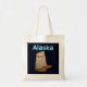 Um par de pastilhas com texto lendo, "Alaska" em azul e branco brilhantes sobrepostas a um fundo estrelado. Muito superior às botas normais de inverno, um bom par de bolinhos, e meias grossas, manterão seus pés bonitos e torrados, não importa o quão frio esteja. Eles mantêm meus pés aquecidos mesmo a temperaturas abaixo de menos 60 Fahrenheit.