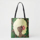 Bolsa Tote Mulher Negra, Loura Afro, Folhas Verdes, Marrom