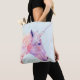 Místico Unicórnio I de Victoria Borges. Possui um unicórnio rosa e roxo com traços semelhantes a pincel.