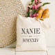 Uma bolsa de tote moderna minimalista para celebrar uma avó cômica, esta bolsa mínima limpa apresenta "Nanie" ou sua escolha de apelido avó em letras negras de serifa. Personalize com o ano em que ela se tornou avó por baixo de elegantes números romanos para um toque chic.