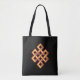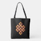 Nó eterno ouro no Saco de Tote preto. O nó interminável simboliza sabedoria e compaixão em vários países orientais. O nó eterno significa que estamos todos interligados.