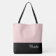 Esta linda bolsa tote fashion forward mostra a palavra "Noiva" em cor de texto branca sobre preto com a parte superior da bolsa em Açúcar Giro (bege rosado). Tem muito espaço para texto personalizado. Gráficos e texto estão em ambos os lados desta bolsa. Alça preta. Personalize ainda mais ou compre como mostrado.