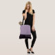 Esta linda bolsa tote fashion forward mostra a palavra "Bridesmaid" em cor de texto branca sobre o mais profundo roxo ametista defumado escuro com a parte superior da bolsa em Sugared Plum personalizado. Tem muito espaço para texto personalizado. Gráficos e texto estão em ambos os lados desta bolsa. Alça preta. Personalize ainda mais ou compre como mostrado.