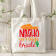 Noiva Nacho Média Sombrero Espanhol Casamento Divertido Bolsas tote apresentam o texto "Noiva Nacho Média" em tipografia de script moderno divertido acentuado com um sombrero e planta de cacto. Presente perfeito para a noiva para um chá de panela ou dia do casamento. Criado por Evco Studio www.zazzle.com/store/evcostudio