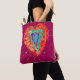 Esta bolsa de tote de Dia de os namorados apresenta um coração retrohippie estilizado em vermelho, rosa e turquesa em fundo rosa. Personalize com um nome na escrita moderna. Projetado pelo famoso artista mundial Tim Coffey.
