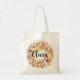 A bolsa de tote de casamento personalizada apresenta um monograma e estilo de boho elegante. Design floral de tendências botânicas brancas, com lindas cores rosa, outono, flores amarelas a aquarela e verde. Paleta de sombras cor-de-rosa, amarela, verde e verde. Personalize com um primeiro nome. Parabéns!