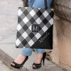 Bolsa Tote Nome do Monograma da Xadrez de Verificação de Búfa