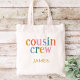 Carregar a diversão com nossas bolsas de tote da família que combinam, com um gráfico de texto "Cousin Crew" multicolorido, em cores retrorreflectoras, personalizadas com o nome do seu filho. Estas bolsas na moda e funcionais são perfeitas para excursões familiares, viagens de praia, ou uso diário, celebrando o vínculo especial entre primos de uma forma colorida!