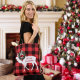 Esta bolsa de tote é uma ideia divertida de presente de Natal. A design apresenta um fundo de xadrez de búfalos com um alce branco de silhueta com uma coroa pendurada nas galhadas. Você pode manter ou personalizar o texto que mudará em ambos os lados da bolsa. Você também pode remover/excluir o texto modelo no link.