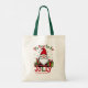 Os Papais noeis de Natal Gato-de-Fé-de-Feira Festa Personalizada Tote Bags exibem o texto "Está na hora de ser Jolly" na tipografia vermelha e verde moderna, destacada com Papais noeis gnomos bonitos com presentes de Natal e personalizada com seu nome abaixo. Perfeito como presente para a família e amigos nos feriados. Criado pelo Evco Studio www.zazzle.com/store/evcostudio