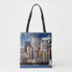 Fotografia da linha do horizonte de Nova Iorque com barco a vela no rio Hudson