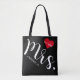 Sacola moderna e elegante para a nova Sra. Design apresenta o script de caligrafia ''MRS'' em cor branca no fundo preto, seguido do novo sobrenome e ano estabelecidos no topo do coração vermelho. Presente perfeito para recém-casada, noiva etc.