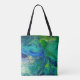 O acrílico derrama o design foi criado em umas grandes canvas a seguir fotografado e lugar nesta sacola colorida bonita.