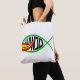 Uma design paródia dos Ichthys (Jesus Fish). O design do peixe Ichthys, amontoado com o Peixe-Coringa de um desenho de quadrinhos. WWJD em texto preto é dentro da pesca, perguntando, "O que o Joker faria?"