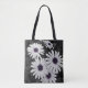 Esta imagem mostra um aglomerado de margaridas com pétalas brancas e polos púrpuros-azuis em greve. O fundo e a folhagem estão em preto-e-branco, criando um efeito colorido seletivo que enfatiza as cores vívidas dos centros das flores. O contraste entre os arredores dessaturados e as delicadas flores dá à imagem uma qualidade artística, quase surreal, destacando a beleza e a complexidade da natureza.