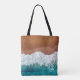 Bolsa Tote Ocean wave on a sandy beach, background top view