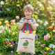 Make this year's egg hunt extra special with this "Official Egg Hunter" personalized tote bag! This durable canvas bag features a classic green bunny rabbit silhouette paired with retro-inspired red typography. The design includes a customizable template to add your child's name and the year (shown as "Jason 2026"), making it a wonderful keepsake. It is the perfect eco-friendly alternative to a traditional Easter basket, roomy enough to hold plenty of eggs, chocolate, and spring treats. Great for boys and girls alike!