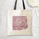 O design do produto apresenta uma grande ilustração do rosa em cor-de-rosa e branco retrorados. Esta elegante design botânica faz uma simples sacola de tote moderna e única com texto personalizado. Deu uma ideia para o seu aniversário, dama de casamento, Dia das Mães, e muito mais!