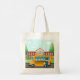 Um ônibus escolar e seu motorista fora de uma escola. Este design parece realmente eficaz nesta Tote Bag