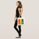 Este Saco do Orgulho é decorado com listras do arco-íris e a palavra Orgulho na tipografia da na moda.