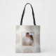 Inspirada pela mandala geométrica com uma chama de boho, esta mala de impressão tote pode ir a qualquer lugar com você. O design de padrão de explosão solar apresenta uma imagem de ouro falsa, simulada e em relevo branco, em uma cinza falsa. Solte sua própria foto personalizada e personalize com um nome ou mensagem. Excelente para o saco de compras do dia a dia ou mala de ocasião especial como uma noiva ou uma mala de damas de honra. Por favor, note que o efeito falso é simulado pela representação artística.