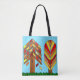 Esta bolsa tote tem um design art déco de árvores coloridas para o outono feito de várias formas em um campo azul.
