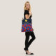 Saco de tote de dois lados super fofo para o seu remo e engrenagem de picleball. Design apresenta uma bola amarela, duas linhas de texto personalizado definidas acima de um padrão floral vermelho, azul, de hibisco roxo. Consiga os correspondentes para o seu clube, equipe ou viagem de picleball. . Faz um belo presente para o jogador de picleball em sua vida.