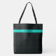 Bolsa Tote Padrão de Bolinhas Verde-azulado em Preto com Text