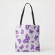 Esta bolsa de tote de padrão de borboleta roxa é a bolsa perfeita para levar na sua próxima viagem de compro. Confira!